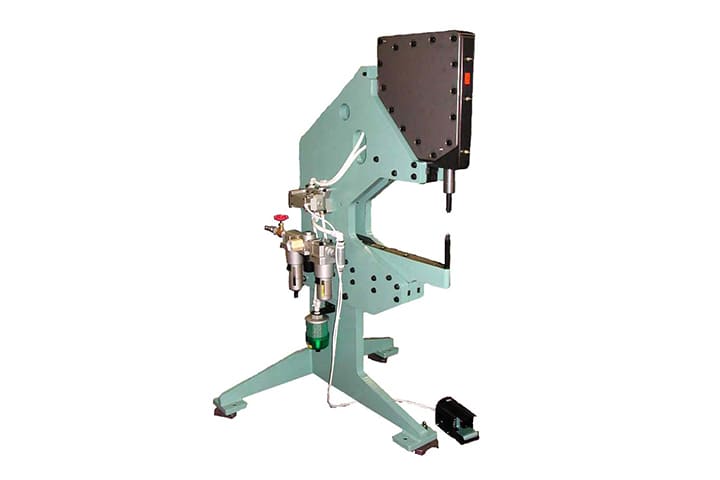 With the two plates clamped together, pushing the punch into the die partially cuts the two plates, and pushing the punch in further widens the cut area, which serves as a retaining clip. The two plates are firmly joined through this series of simple movements.