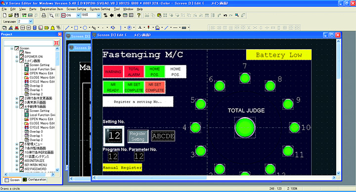 In addition to displaying Nutrunner functions, the user can configure the screen to display PLC operations. (Screen configuration software is required)