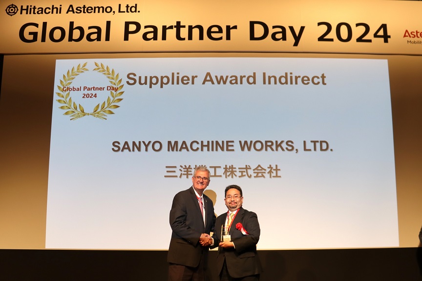 Nov. Awarded "Supplier Award 2023 SANYO MACHINE WORKS, LTD." by Hitachi Astemo, Ltd.