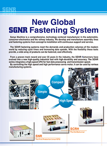 With a proven track record in the industry since 1976, the SGNR Nutrunners have evolved into a new high-quality industrial tool with high-durability and accuracy. The SGNR series integrates a high-speed CPU for fast data processing and transmission speed. By controlling the high speed and high performance servo motor, it can be used in various manufacturing systems.