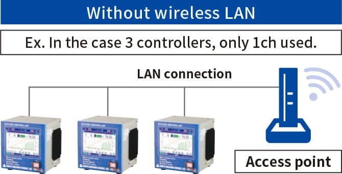 Choose with wireless LAN or without wireless LAN to connect to the external access point. Reduce the risk of radio wave interference by connecting multiple station controllers to the access point.