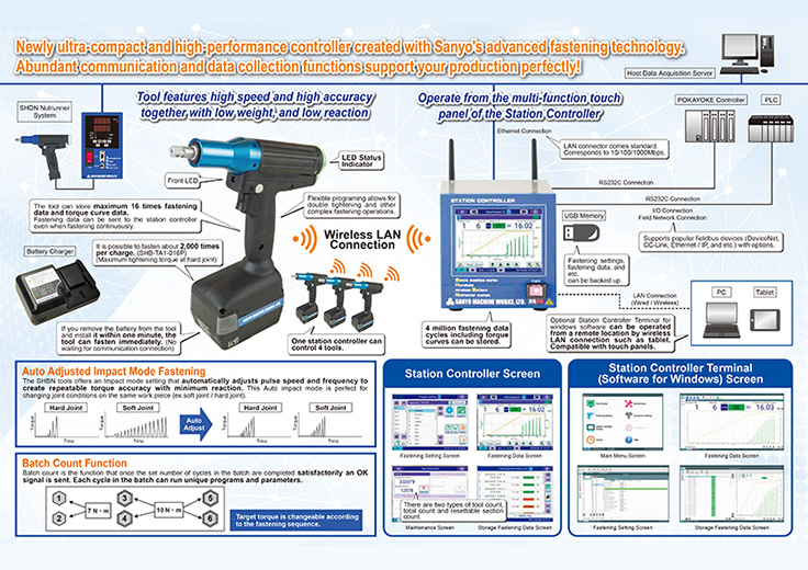 Newly ultra-compact and high-performance controller created with Sanyo's advanced fastening technology.Abundant communication and data collection functions supportyour production perfecty!