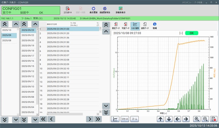 - 締め付け履歴は締め付けデータにトルク波形データを含めても400万件保存可能。