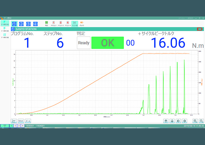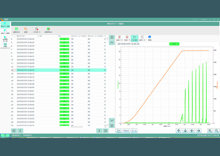 - タッチパネル液晶画面から締め付けデータの表示、締め付けデータ履歴の確認、 締め付け設定の変更等全てのオペレーションが可能です。